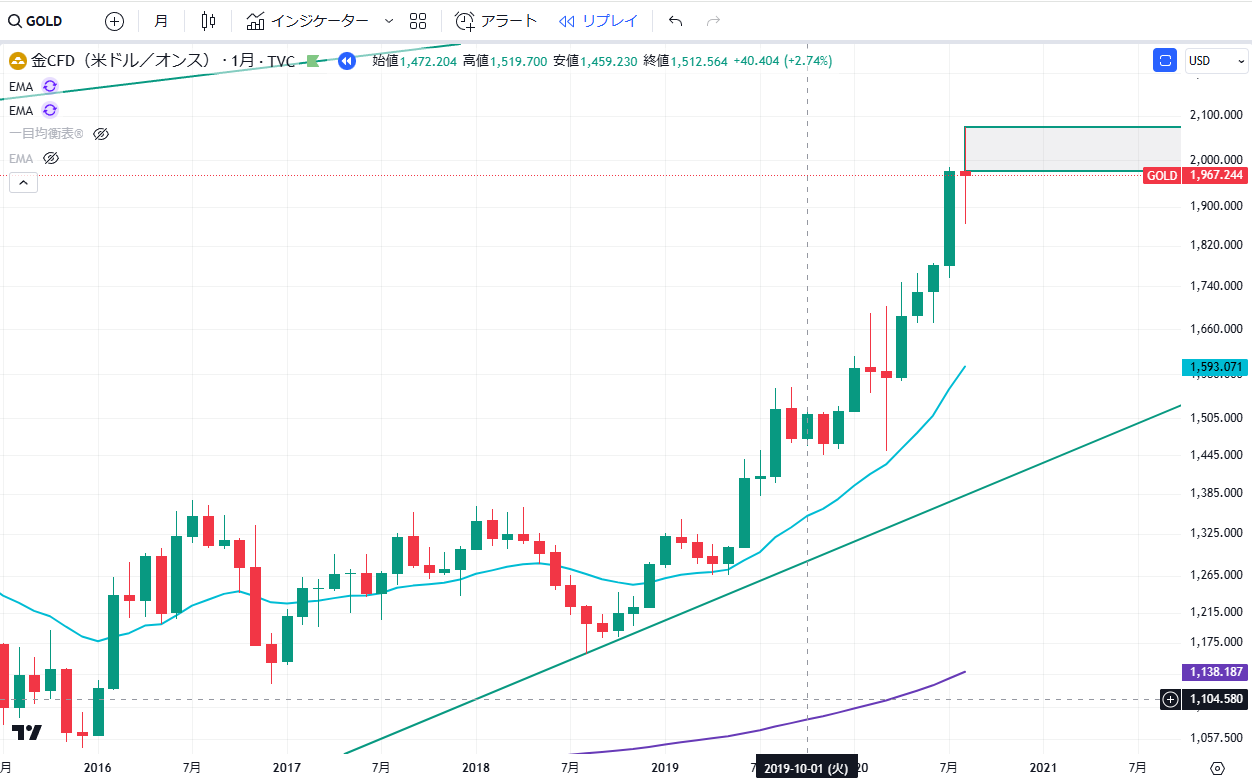 これまでのサンプルと選定基準が異なり、月足での類似チャートを持ってきている。