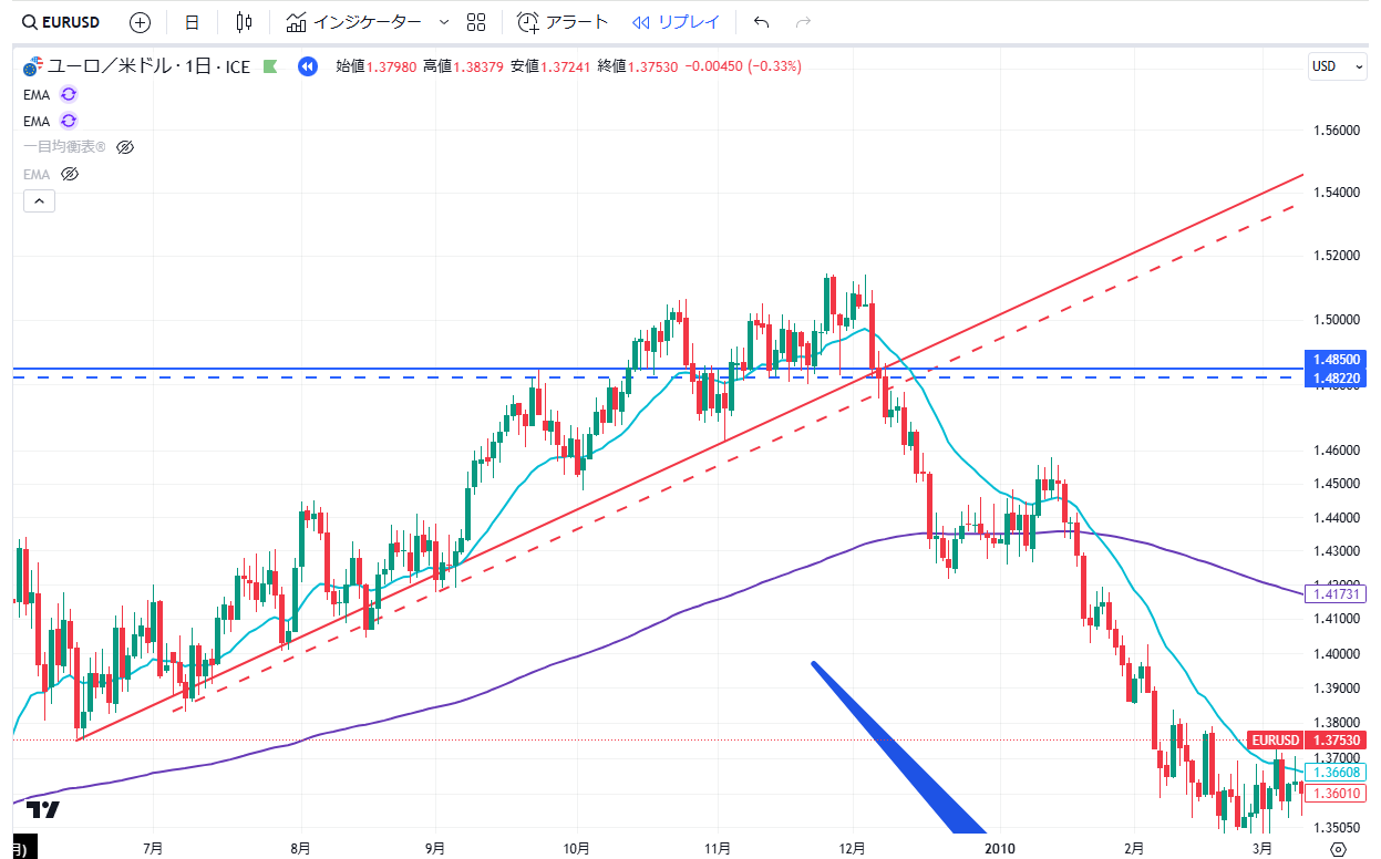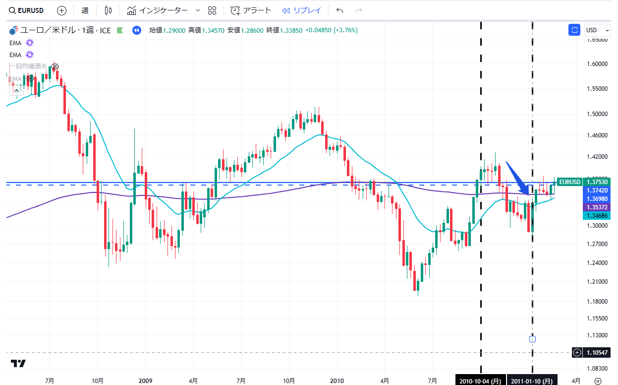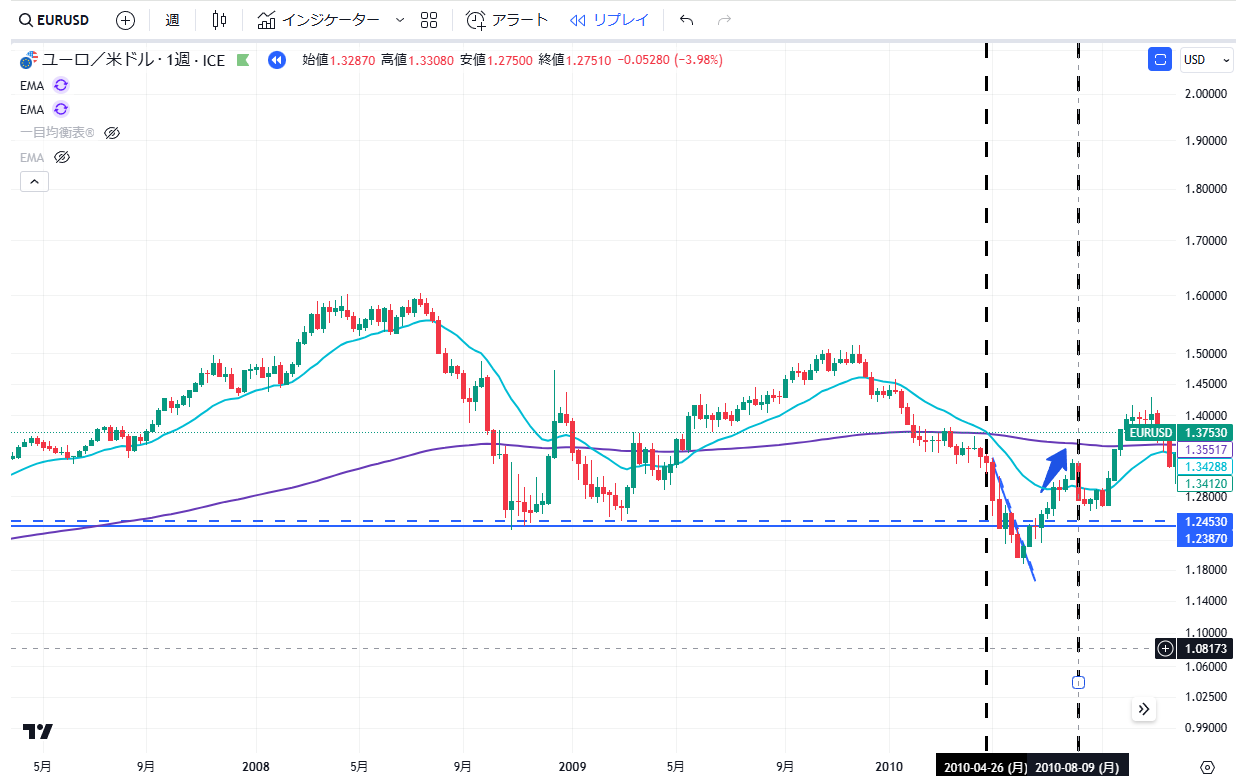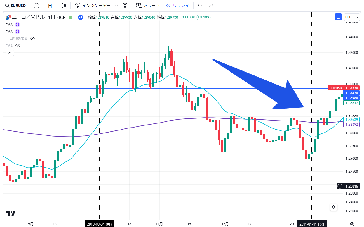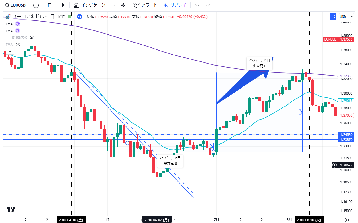 当記事は、通貨EURUSDペアの2010年の上昇・下落の値動きについて、