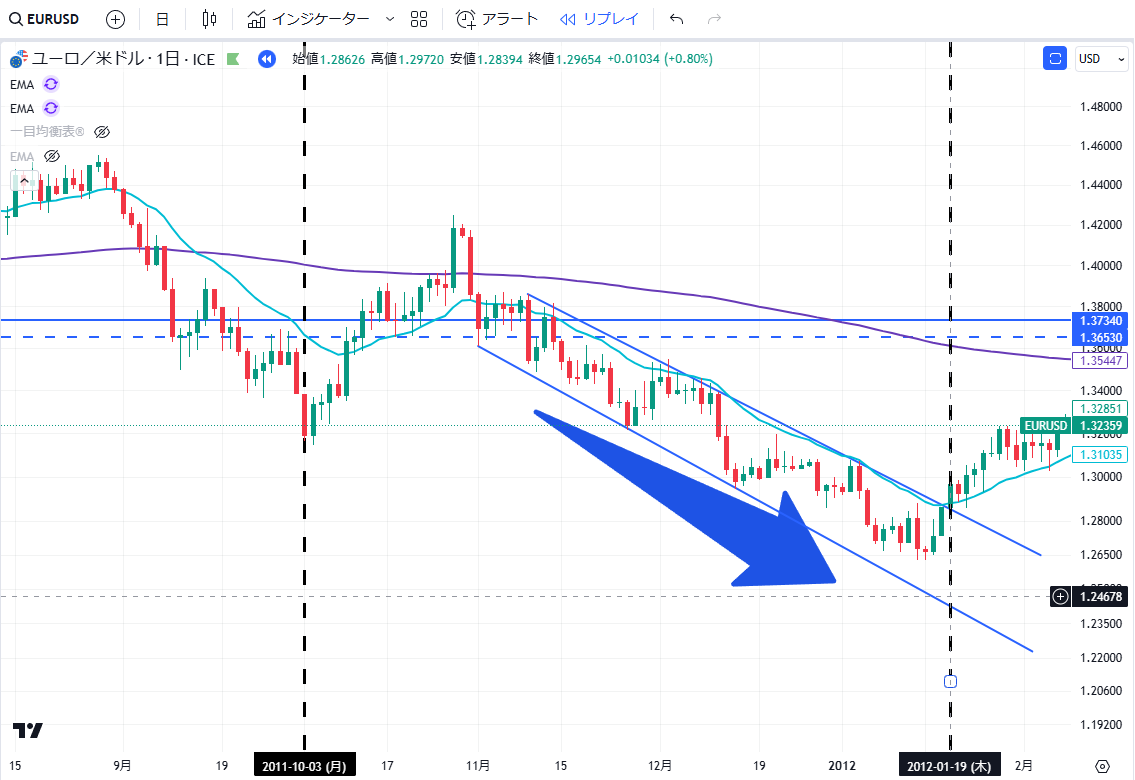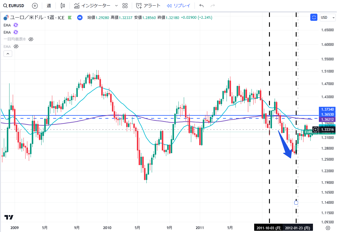 - 2011年は月足レベルの巨大な下落トレンドが発生していた