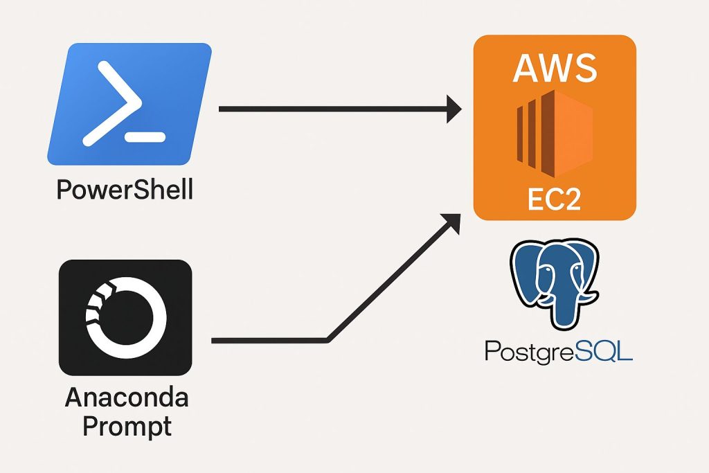 - Anaconda Prompt:ローカルでPythonを実行し、EC2のDBと通信