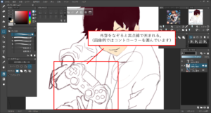 その後、塗りつぶしたい範囲の外郭をなぞります。