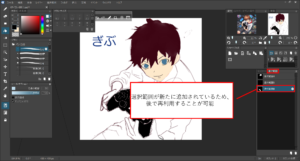塗りつぶしの作業が終わって、線画を描く等の別の作業に戻りたい場合は、